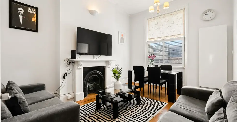 A charming 2-bedroom flat in a period building, featuring a master double bedroom, a single bedroom, a separate living room, a fully equipped kitchen, and a modern bathroom.